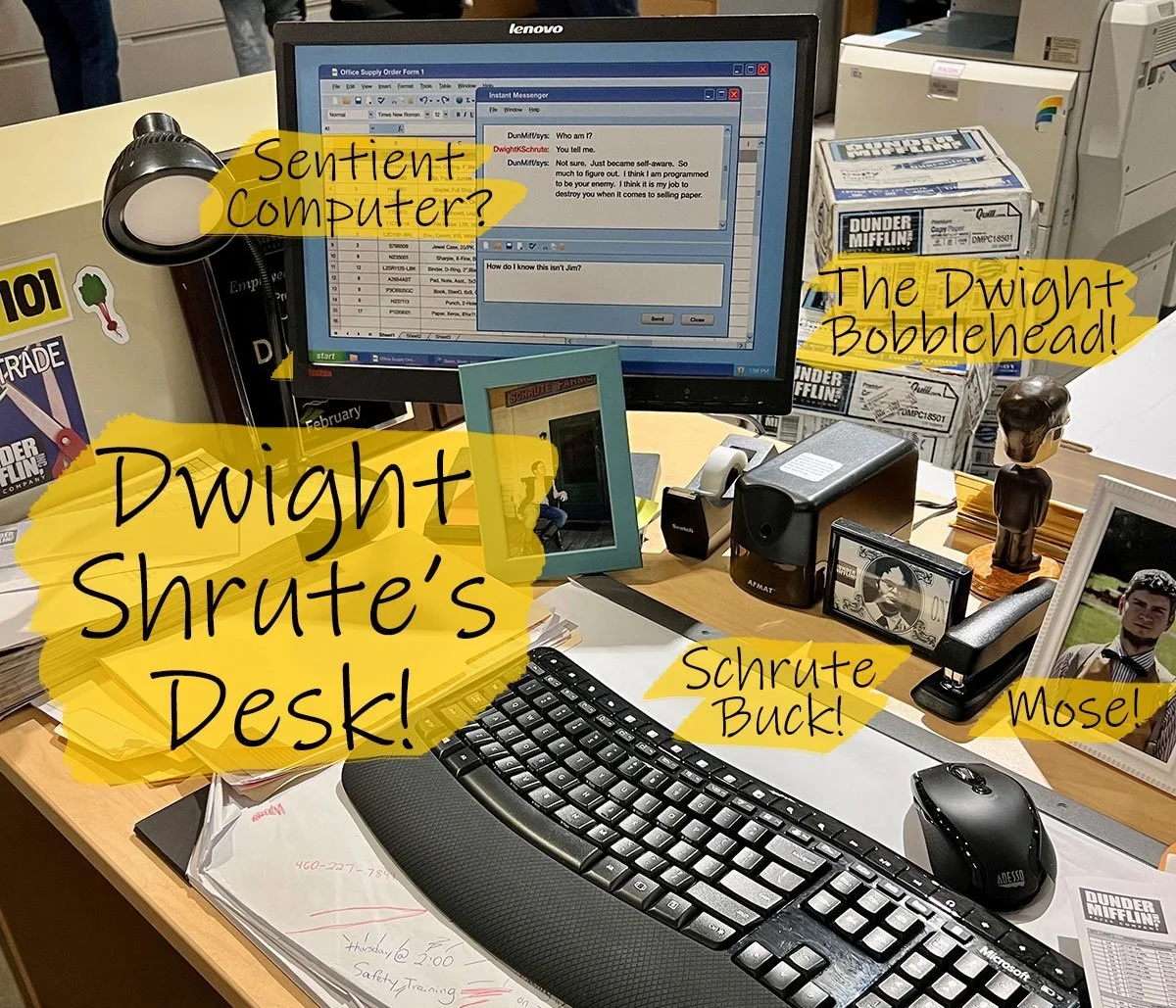 Dwight's computer screen was staged like the episode where Jim tries to convince Dwight that the Dunder Mifflin server is auto messaging Dwight: